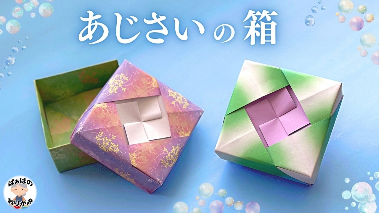 | 説明文 | 「ばぁばの折り紙」へようこそ! この動画では、折り紙の「紫陽花の箱」の作り方を音声付きでゆっくり解説しています。ふたの中心部分があじさいの花のような雰囲気になっている、とてもおしゃれな箱です。折り紙は... |